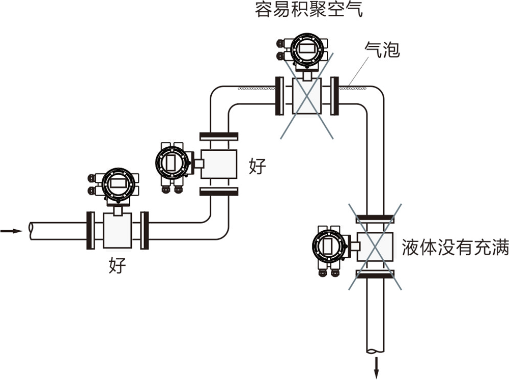 可以說,非滿管是含有氣泡的一種極端情況,既是管內液體未滿,頂部又含有大量氣泡,如果液體還沒沒過電極,那測量結果就會大打折扣。這當屬工程設計之誤。