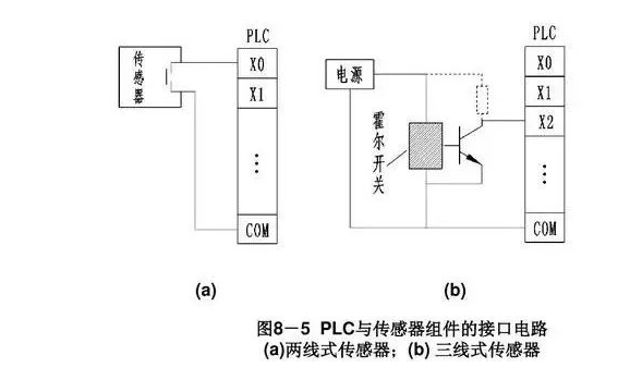 按鈕或者接近開關的接線所示:PLC開關量接線,一頭接入PLC的輸入端(X0,X1,X2等),另一頭并在一起接入PLC公共端口(COM端)。