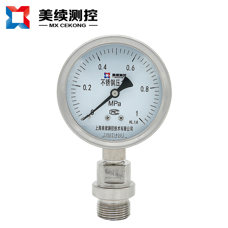 工業(yè)用壓力表MX-YB-01系列分為全不銹鋼常規(guī)壓力表和不銹鋼耐震壓力表,不銹鋼壓力表廣泛用于石油、化工、化纖、冶金、電站等工業(yè)部中對(duì)液體、氣體的簡(jiǎn)易監(jiān)測(cè)和測(cè)量,以便工人,企業(yè)能夠有效地對(duì)所需要監(jiān)測(cè)的自動(dòng)化設(shè)備實(shí)施有效的控制,其特點(diǎn)就是方便快捷和成本低,對(duì)安裝工人的安裝經(jīng)驗(yàn)要求不高。如果想要進(jìn)行更為高精度額測(cè)量請(qǐng)使用上海美續(xù)測(cè)控MX-YL-系列變送器。如果使用環(huán)境中有震動(dòng)等壞境因素,可以使用本系列的不銹鋼耐震耐壓力表,其在指針界面灌裝抗震油可以有效地減少震動(dòng)對(duì)儀表的損害。