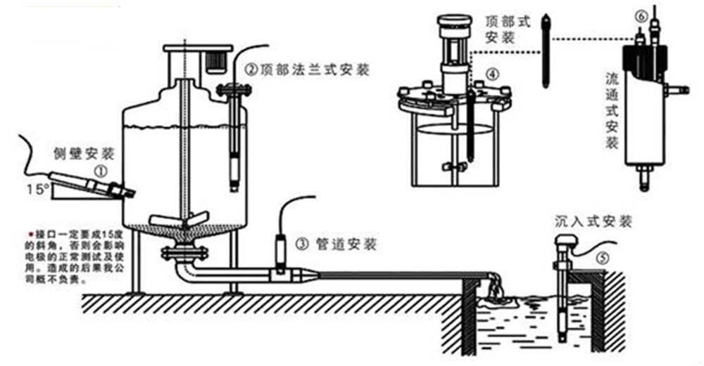 3、電極使用時,需要去掉前面透明保護帽,將玻璃球泡和接液部分侵泡到被測介質中,安裝固定時請用生料到做好防水封閉工作,避免水進入PH電極中,造成PH電極電纜線短路。