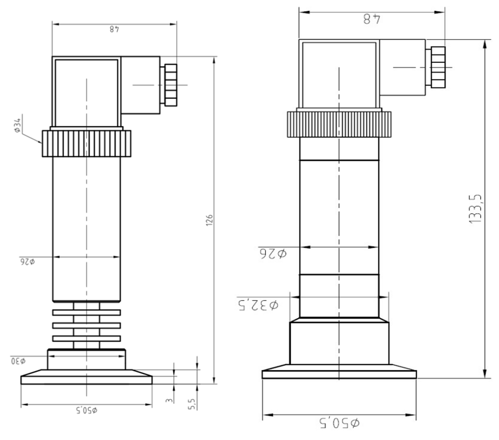 | 電氣連接: | (代號D1)赫斯曼(DIN43650)/外殼防護IP65;防水格蘭/外殼防護IP68(代號D2);航空插件/外殼防護IP45(代號D3); |