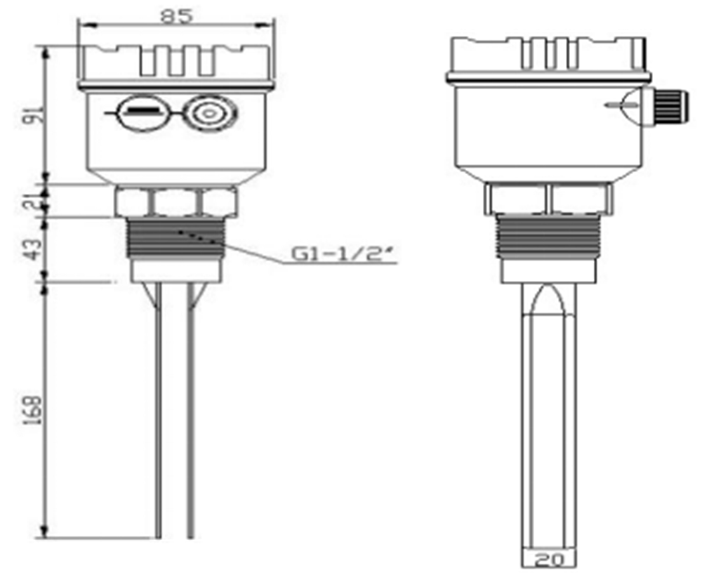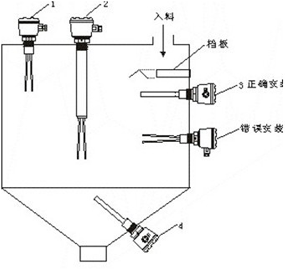 d安裝于卸料斗內,料位開關螺牙底端與桶壁之間的最大距離不超過2.4″(60mm),可避免因物料的不當堆積而發生誤報警的情況