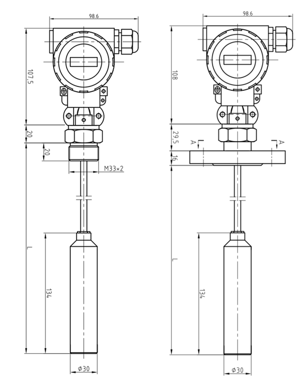 安裝方式M20x1.5外螺紋,G1/2外螺紋,法蘭DN50 PN1.0