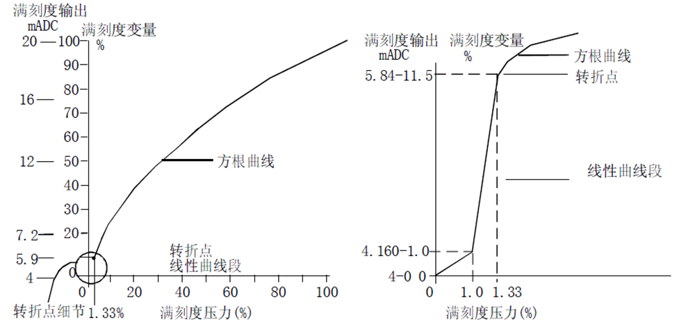 二線制(4~20)mA直流信號上疊加HART數(shù)字信號,由用戶選擇線性輸出或開方輸出。